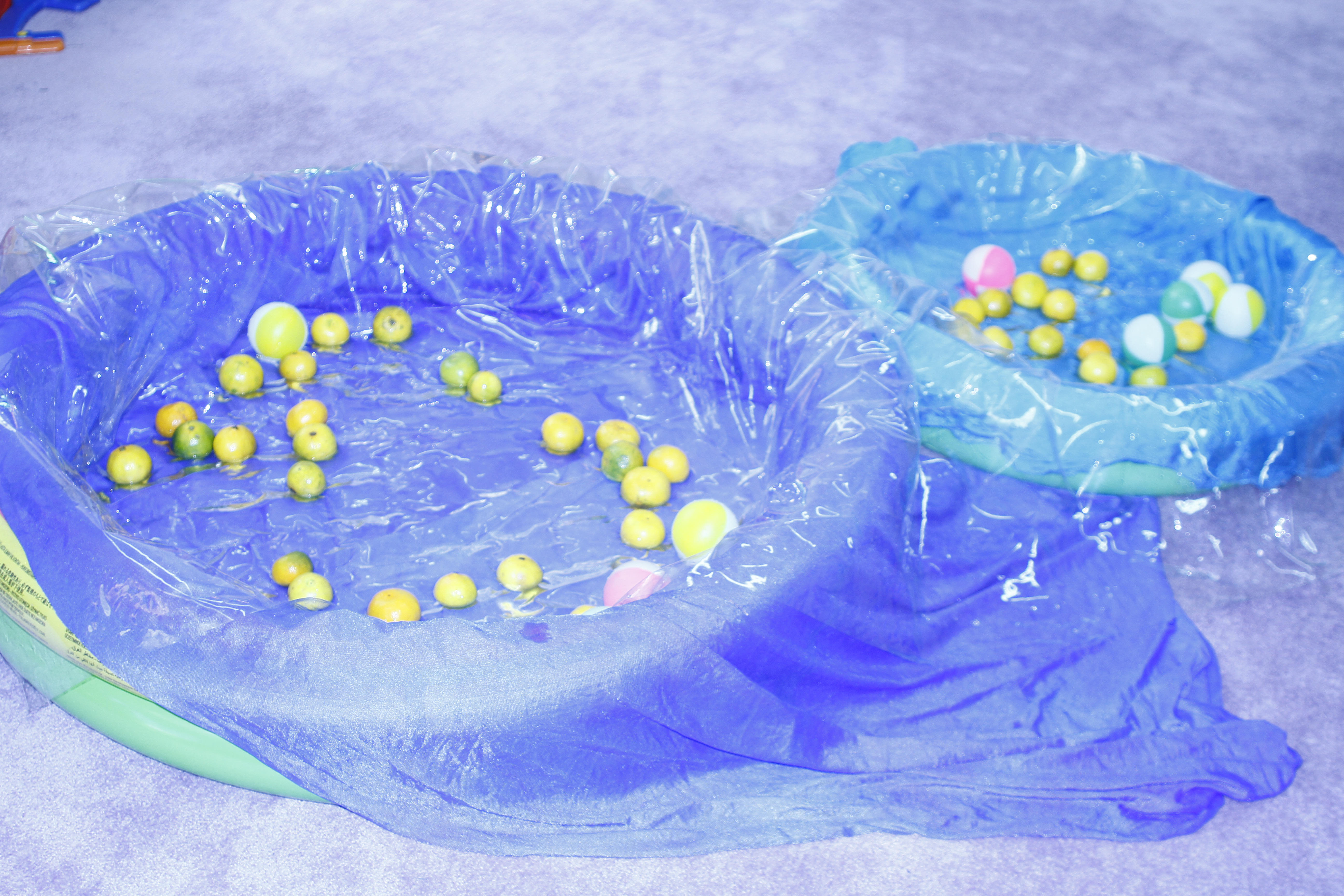 نفر اول: بیاید چیزی بخوریم... تا همه ی قبیله ها جمع بشن خیلی طول می کشه (به میوه های داخل استخر اشاره میکند و یکی را بر میدارد و هر بچه ای خودش برای دست می کند در آبو میوه اش رو برمیداره)